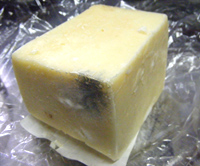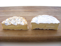 外皮が白いカビにおおわれたもの。カマンベールはこのタイプ。 |